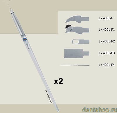 К вомплекте: 2 ручки,набор лезвий и игла