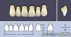 Зубы искусственные гарнитурные трехслойные акриловые.
