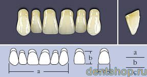 Зубы искусственные гарнитурные трехслойные акриловые.