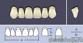 Зубы искусственные гарнитурные трехслойные акриловые.