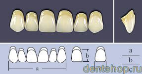 Зубы искусственные гарнитурные трехслойные акриловые.