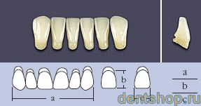 Зубы искусственные гарнитурные трехслойные акриловые.