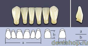 Зубы искусственные гарнитурные трехслойные акриловые.