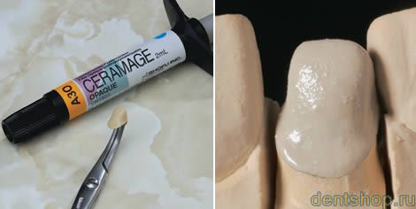Пастообразный опак CERAMAGE с микронаполнителями наносится легко и равномерно. Покрытие металлических каркасов обеспечивается уже при очень малой толщине слоя. Тем самым создается основа для точного совпадения с цветом естественных зубов, керамической системой VINTAGE, основанной на цветовой системе VITA* Classical.