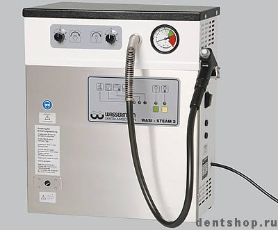 нять его как в лабораториях, так и в стоматологических клиниках. При высоком рабочем давлении очистки до 6 бар одновременно обеспечивается высокая температура обработки. При этом объем подачи пара и насыщенность пара влагой легко регулируются с помощью поворотного регулятора. Стационарное подключение подачи воды делает излишней необходимость заполнения вручную. В пароструйном аппарате Wasi-Steam 2 используется вода без химических добавок, в нем автоматически удаляется накипь, тем самым обеспечивается защита окружающей среды.